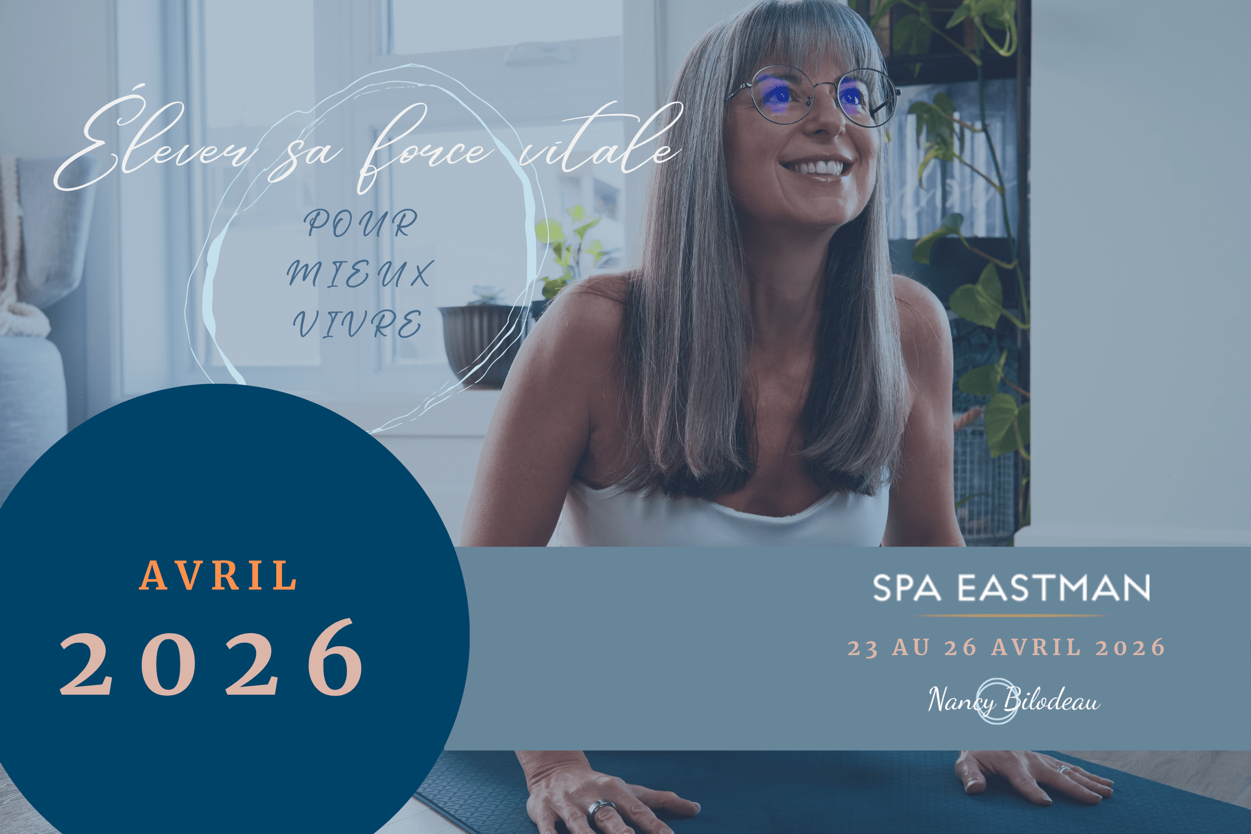 Venez découvrir comment connecter, réveiller, élever et maîtriser votre énergie. Dans cette retraite de 5 jours nous explorerons les sources d’énergies et comment les alimenter de façon à pouvoir manifester la meilleure version de vous-même, vivre heureux et en santé. Offerte au Spa Eastman du 23 au 26 avril 2026.