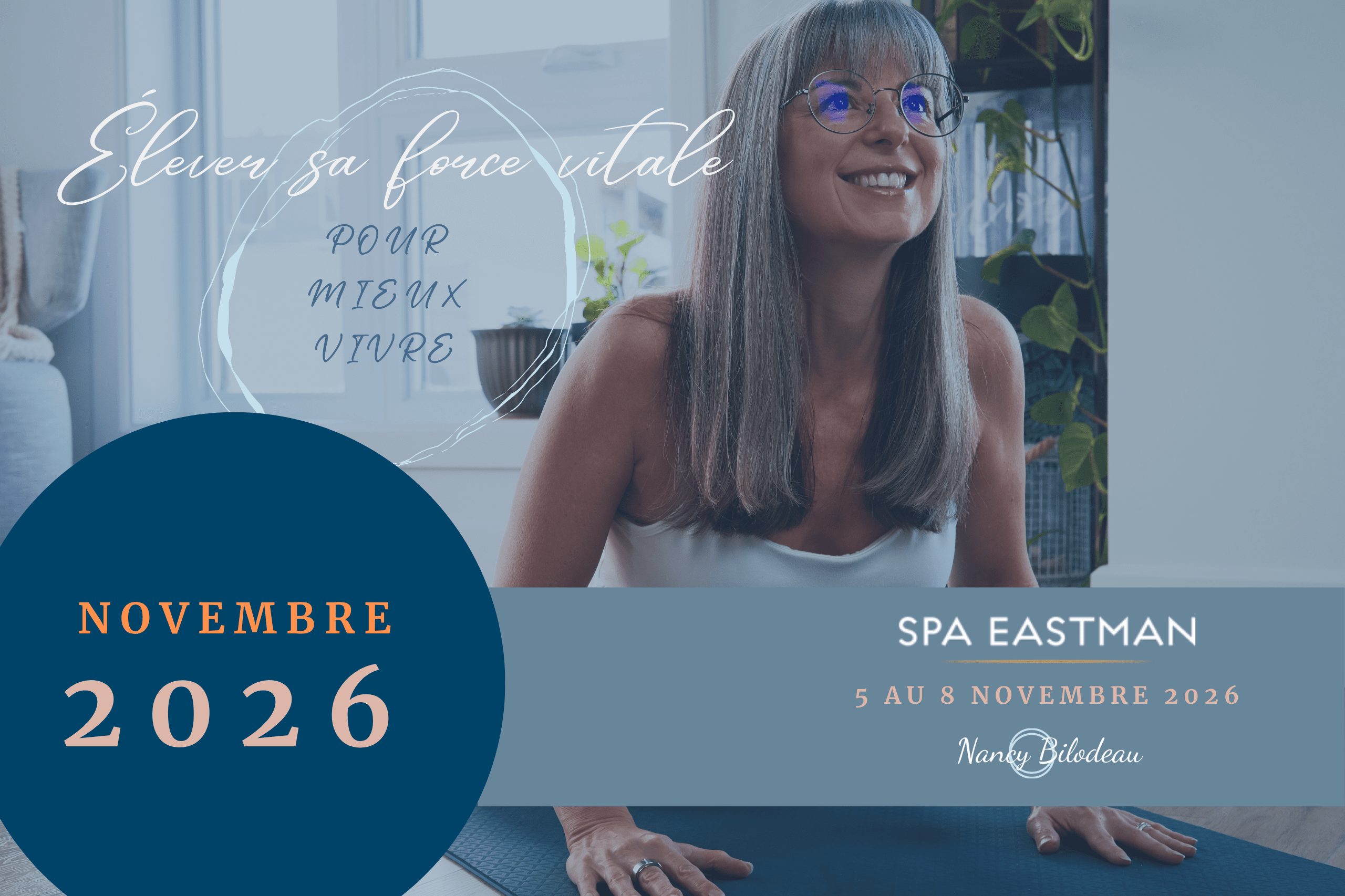 Venez découvrir comment connecter, réveiller, élever et maîtriser votre énergie. Dans cette retraite de 5 jours nous explorerons les sources d’énergies et comment les alimenter de façon à pouvoir manifester la meilleure version de vous-même, vivre heureux et en santé. Offerte au Spa Eastman du 5 au 8 novembre 2026.